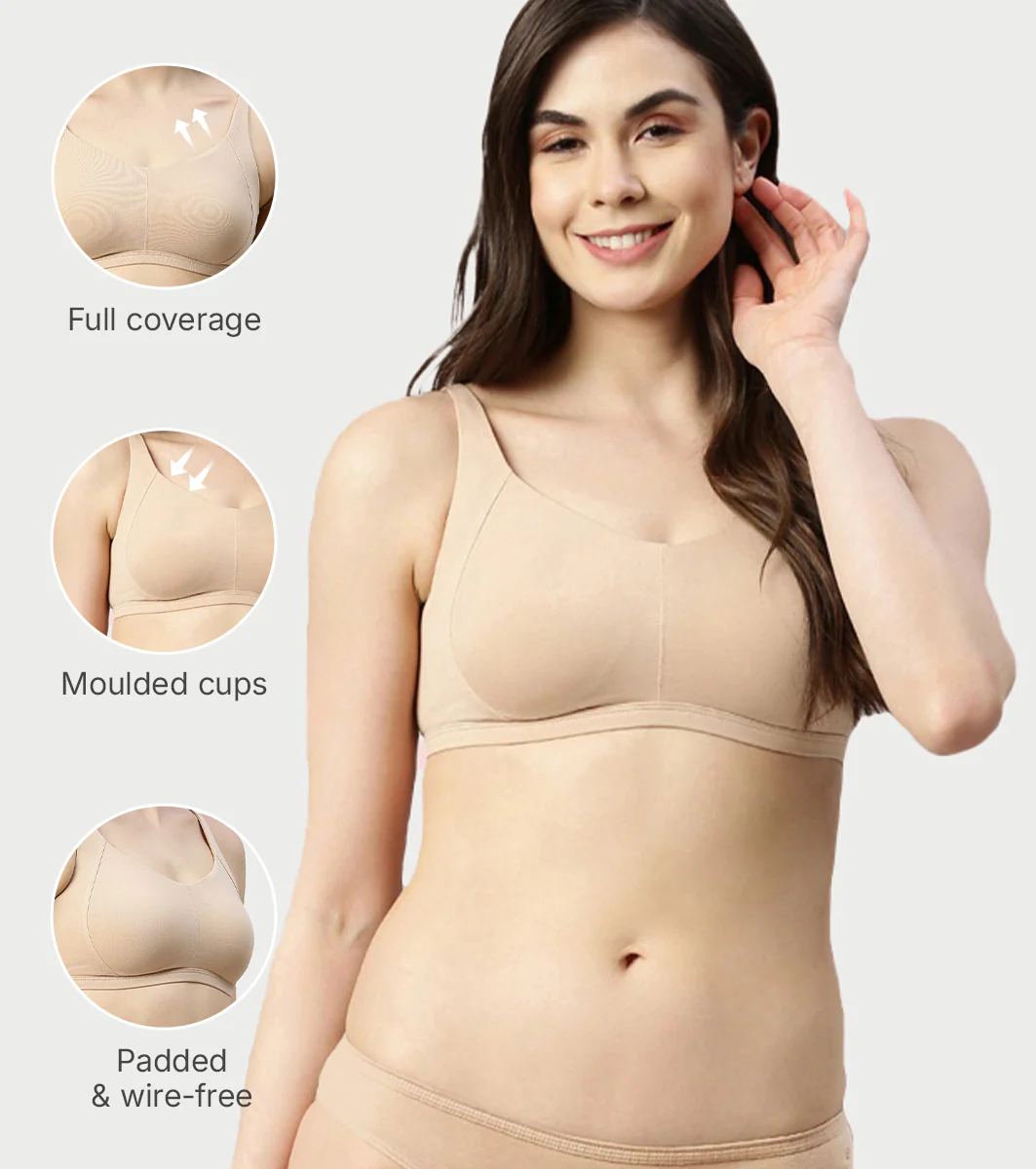 Enamor Innovations Intellifresh Antimicrobial Minimizer Everyday Cotton Bra for Women - Padded, Wirefree, Full Coverage - A058 (Pale Skin)