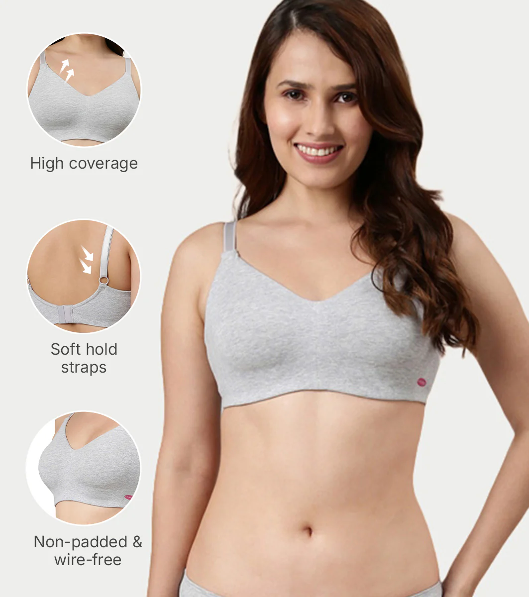 Enamor Ultra-Smoothing Women's Cotton Everyday T-Shirt Bra - No-Pinch, Hidden Lift, Non Padded, Wirefree, High Coverage - A027 (Greymelange)
