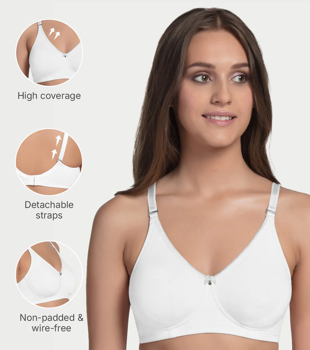 Enamor Comfort Shaper with Plush Side Shaper Panel Women's Cotton Everyday T-Shirt Bra - Detachable Straps, Non Padded, Wirefree, High Coverage - A055 (White)