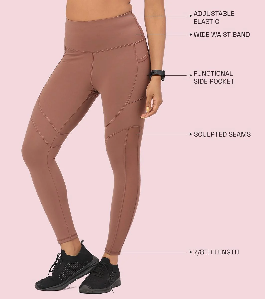 Enamor 7/8th length Dry Fit High Waist Workout Leggings For Women - Held in Fit - A610 (Nutmeg)