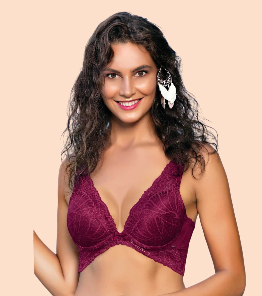 Enamor Butterfly Frame for Cleavage Enhancing Women's Bridal Plunge Push-Up Bra - Lace, Wired, Padded, Medium Coverage - F091