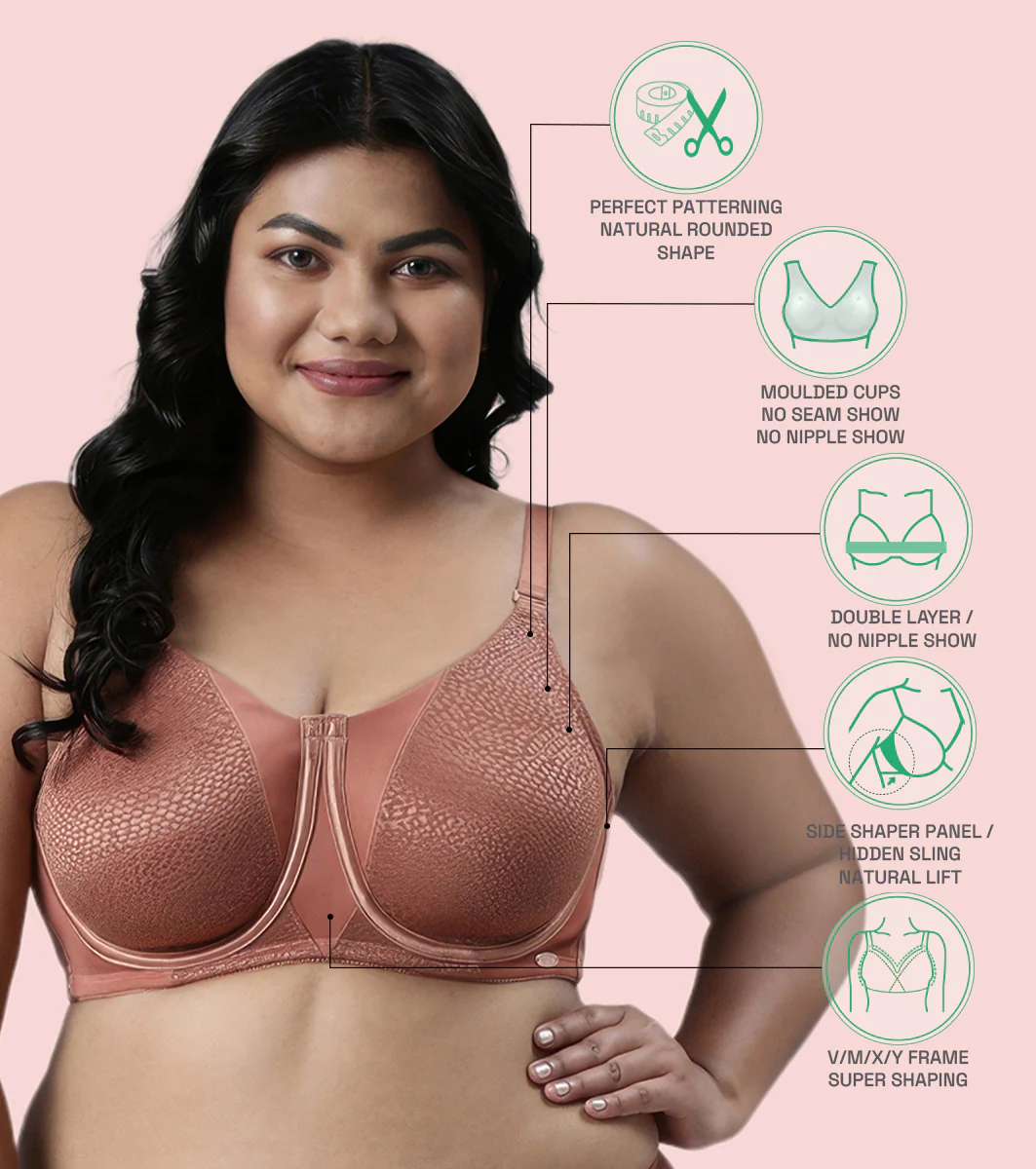 Enamor Innovations Transform Women's Full Support Minimizer Bra - Smoothening and Breathable Non Padded, Wired, Full Coverage - F124 (Available in Plus Sizes) (Cedar Wood)