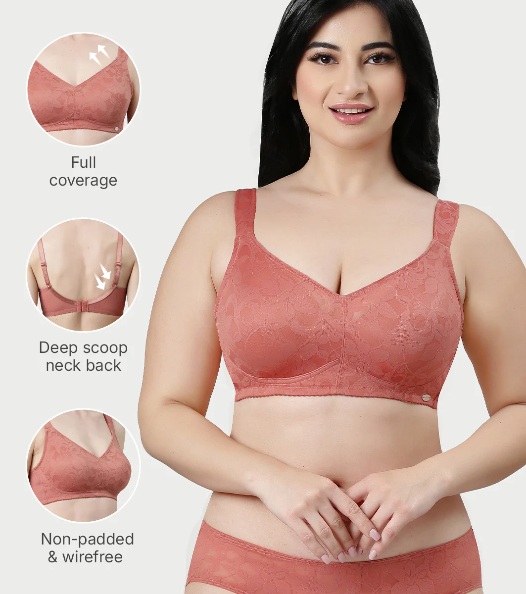 Enamor Innovations Transform Ultralight, Everyday Women's Minimizer Bra -Super lift, Non-Padded, Wirefree, Full Coverage - F122 (Available in Plus Sizes) (Rosette)