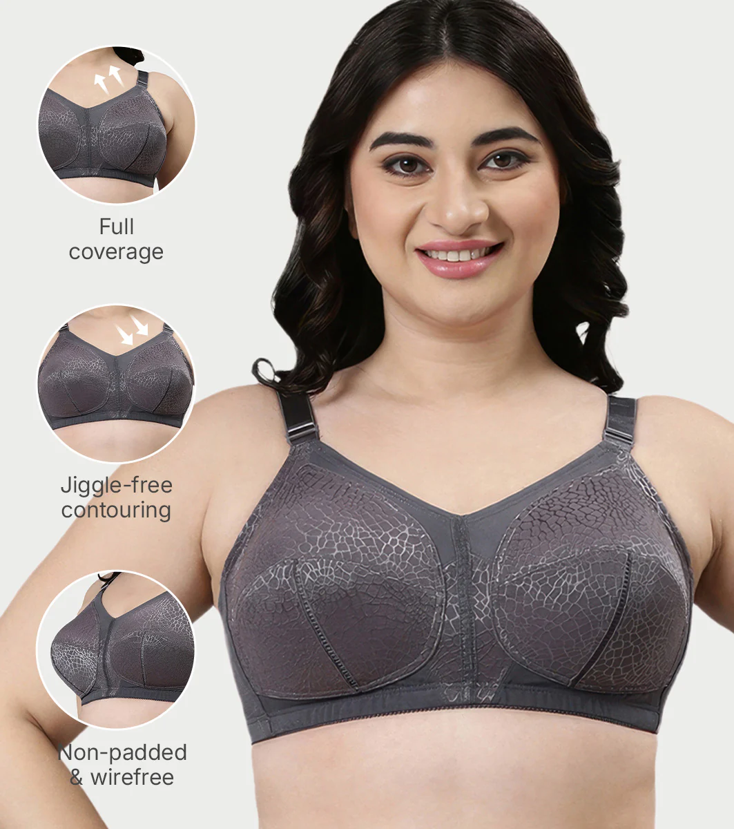 Enamor Innovations Transform M-Frame, Ultimate curve Support, Jiggle control, Women's Bra - Non Padded, Wirefree, Full Coverage - F096 (Available in Plus Sizes) (Ink Grey)